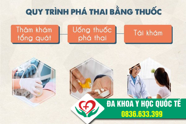 Phá thai bằng thuốc chỉ được thực hiện dưới sự giám sát của các bác sĩ chuyên khoa, nhân viên y tế để đảm bảo phá thai thành công, an toàn. Quy trình phá thai tại cơ sở y tế phá thai bằng thuốc chất lượng gồm các bước sau: